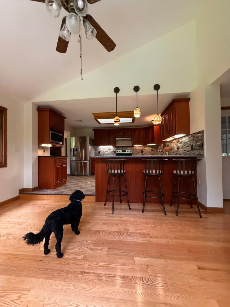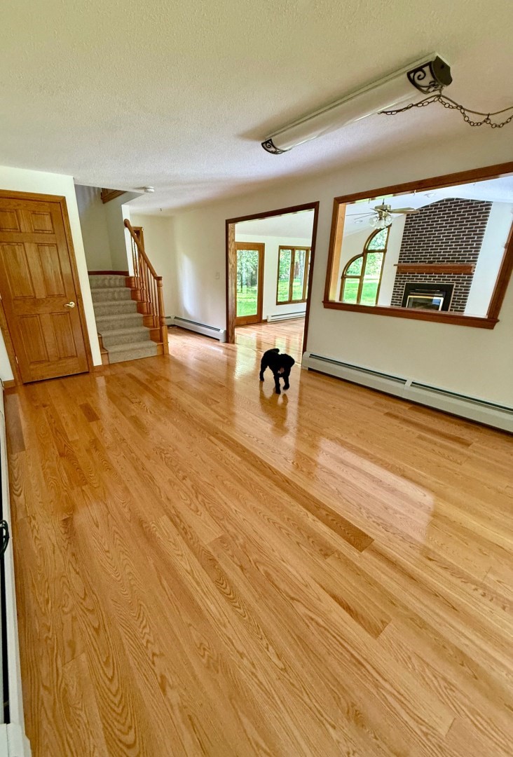 Charming 5-Bedroom Home on 1.5 Private Acres with Exceptional Workshop Space. Welcome to this spacious 5-bedroom, 2-bath home offering 2,886 square feet of living space on a private 1.5-acre lot. The layout features 3 bedrooms upstairs and 2 bedrooms on the main floor. The remodeled kitchen is a true highlight, boasting quartz countertops, a generous pantry, ample cabinetry, and a full suite of appliances. Original wood floors have been beautifully refinished, adding warmth and character throughout. Enjoy indoor-outdoor living with both front and back decks. Car enthusiasts and tradespeople will love the massive 1,364 sq ft detached garage, heated and plumbed for an air compressor—an exceptional space for a workshop, hobby area, or additional storage. Other standout features include: Brand-new septic system, Newer roof, Finished basement with two additional rooms (laundry room and mechanicals). 160 sq ft backyard shed, perfect for storing yard tools or equipment.